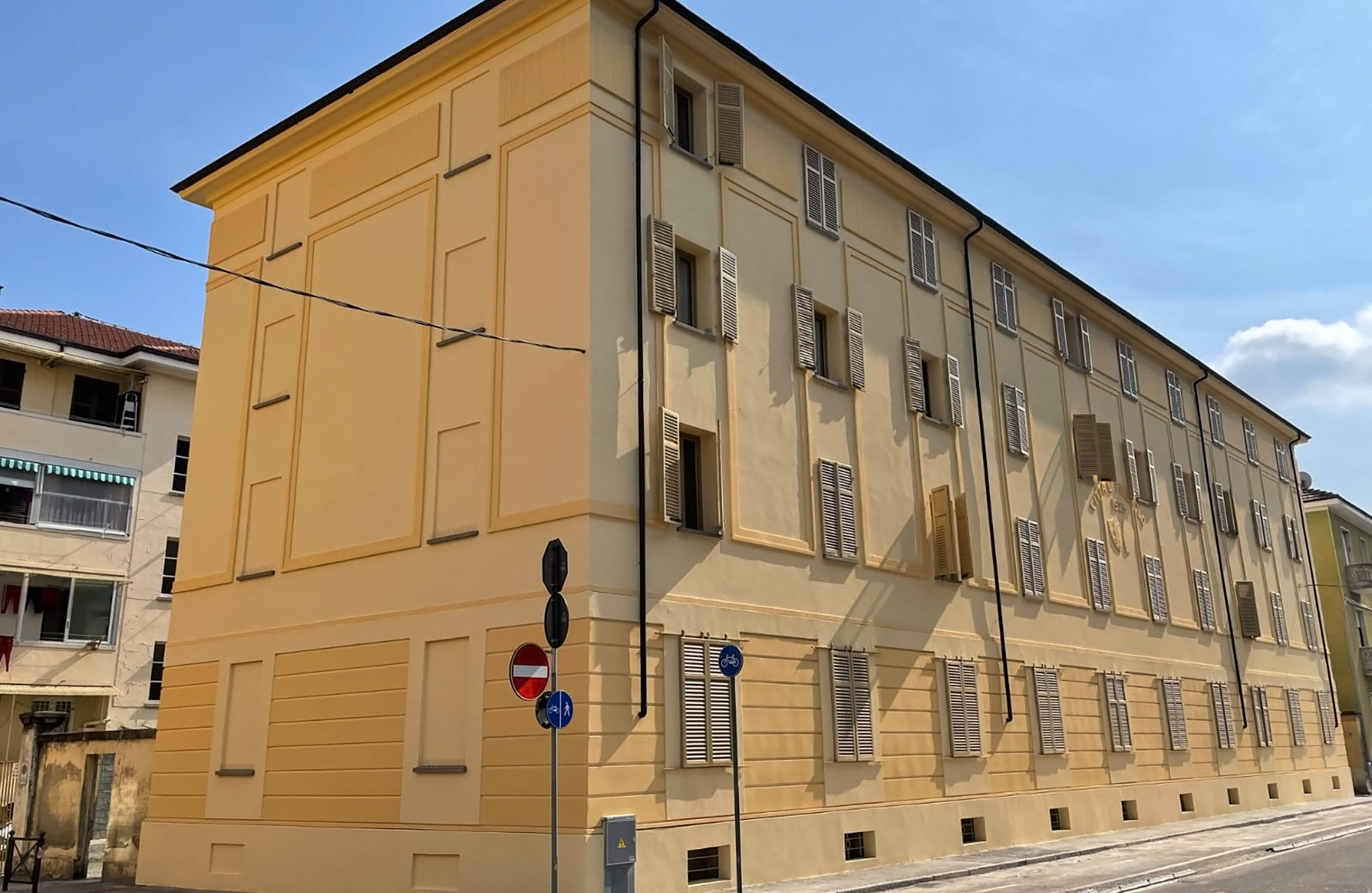 I lavori hanno comportato la realizzazione di significativi interventi strutturali e tecnologici. In particolare, è stato realizzato un cordolo perimetrale sulla copertura e applicato un intonaco armato sulle pareti perimetrali esterne per migliorare la resistenza sismica dell’edificio. Contestualmente, sono stati portati a termine importanti interventi di efficientamento energetico, tra cui la sostituzione dei serramenti esterni, l’applicazione di un cappotto termico esterno che ha mantenuto le decorazioni preesistenti, l’isolamento del solaio sottotetto e del piano cantinato, la sostituzione di alcune caldaie e l’installazione di sistemi di ventilazione meccanica controllata. A completamento dell’intervento, sono stati eseguiti anche lavori di rimaneggiamento del manto di copertura e l’installazione di una linea vita per la sicurezza durante la manutenzione.